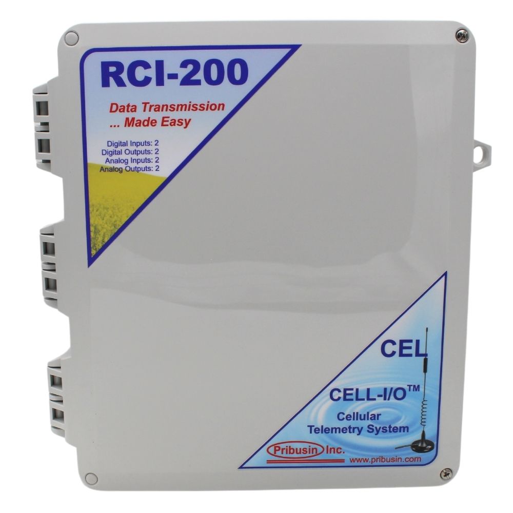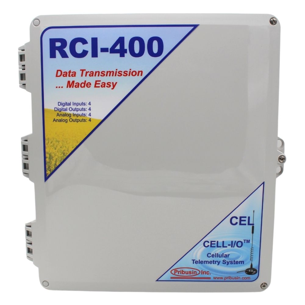 The RCI-400-CEL is a bi-directional cellular communication system that exchanges the status of 4 dry contact inputs and 4 analog inputs between a host and remote unit or a host unit and several remote units. A basic system consists of one host station and one or more remote stations.